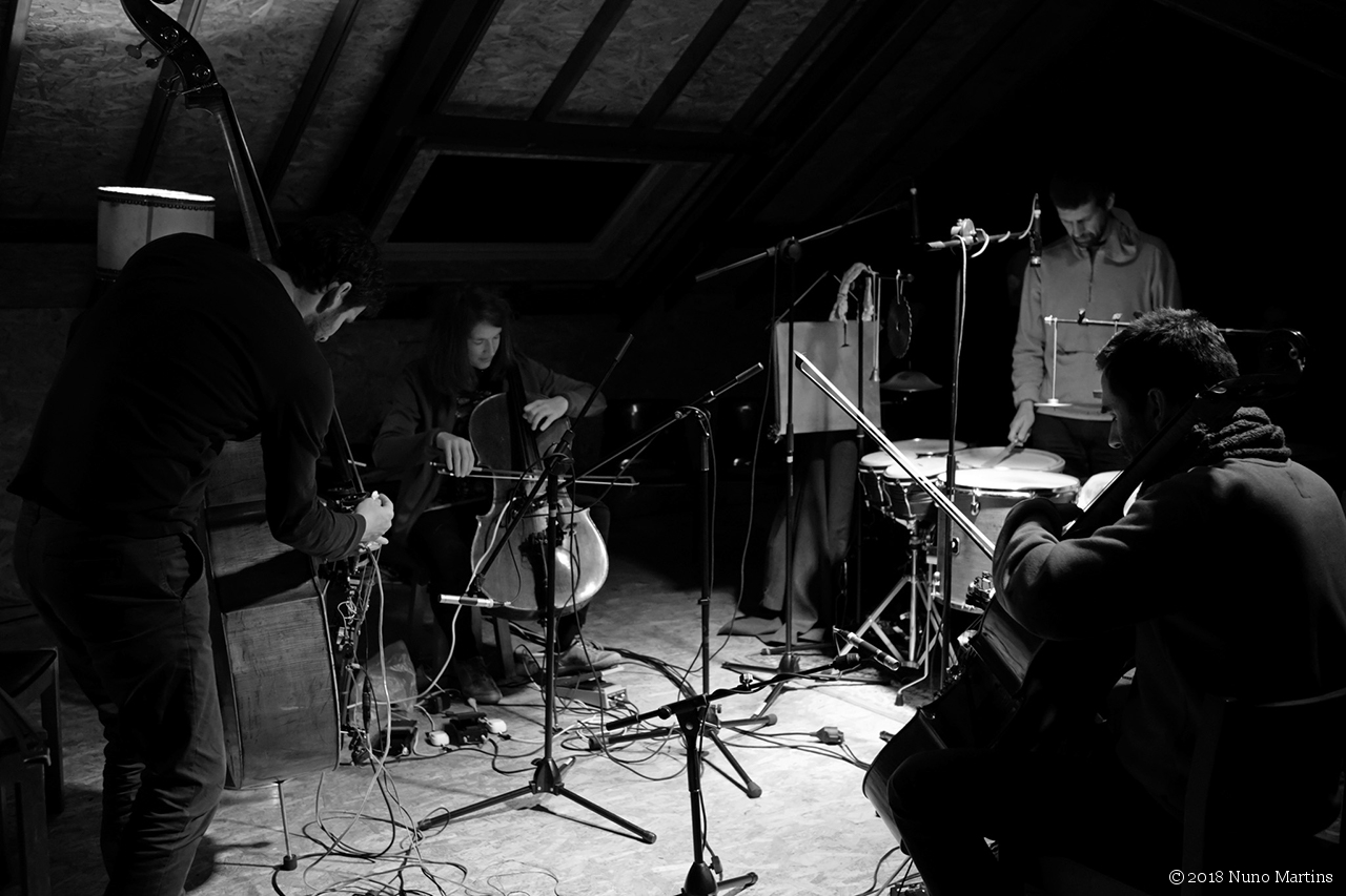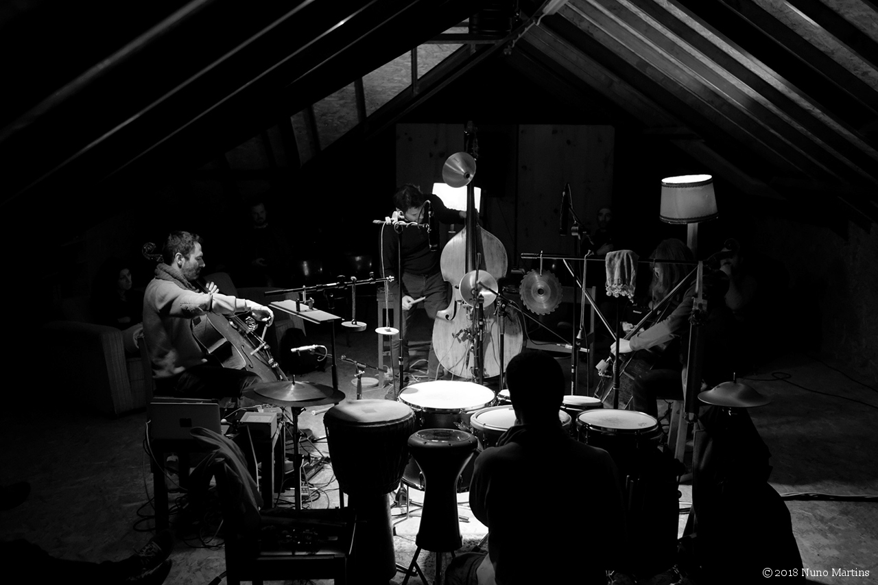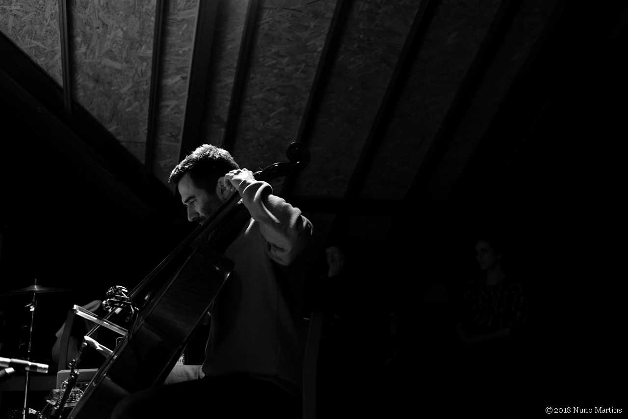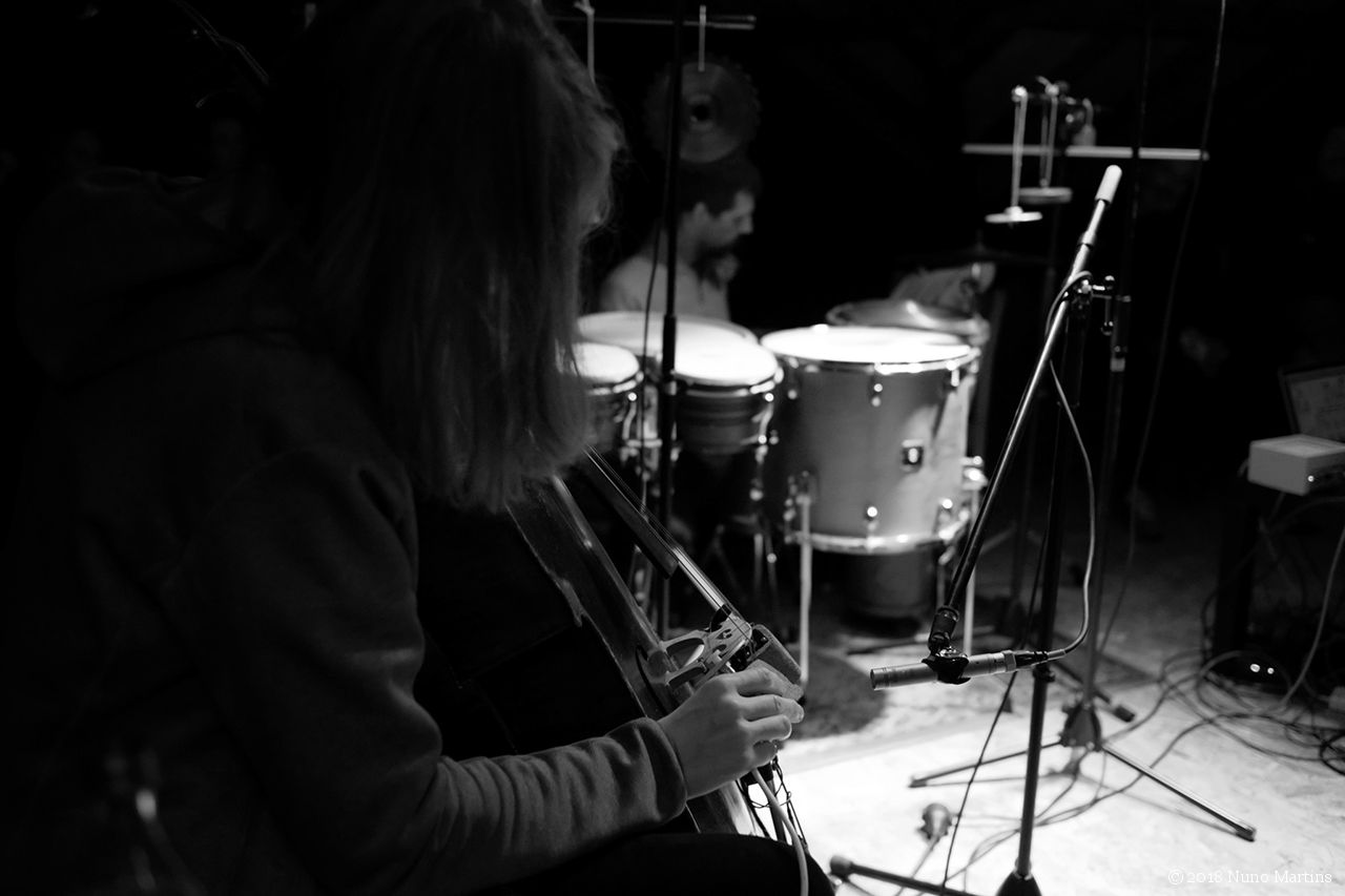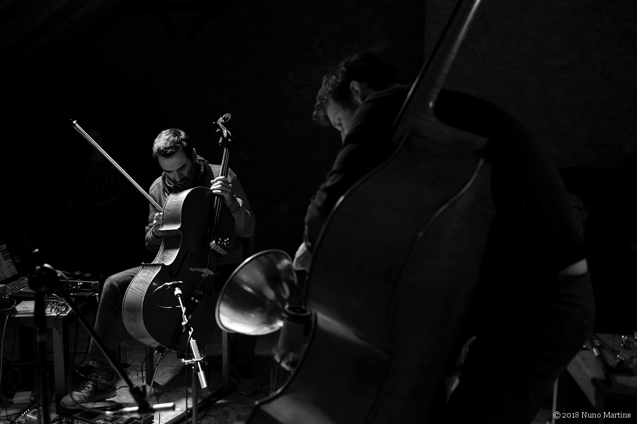 Beat The Odds & Nuno MorãoPascal Niggenkemper doublebass Elisabeth Coudoux cello Ricardo Jacinto cello w/ guest Nuno Morão percussion live @ Smup Parede, 19 December 2018