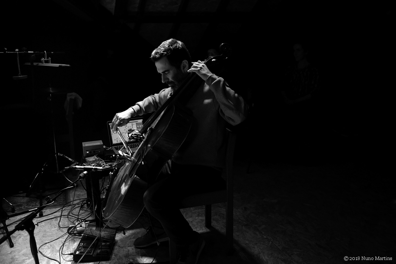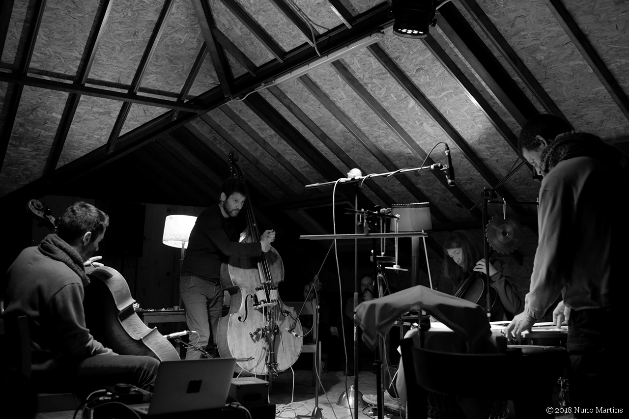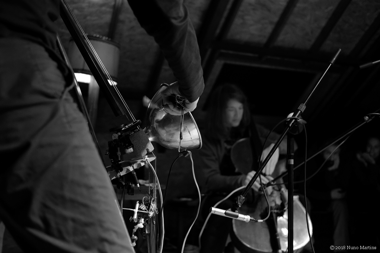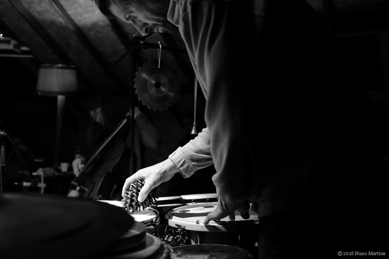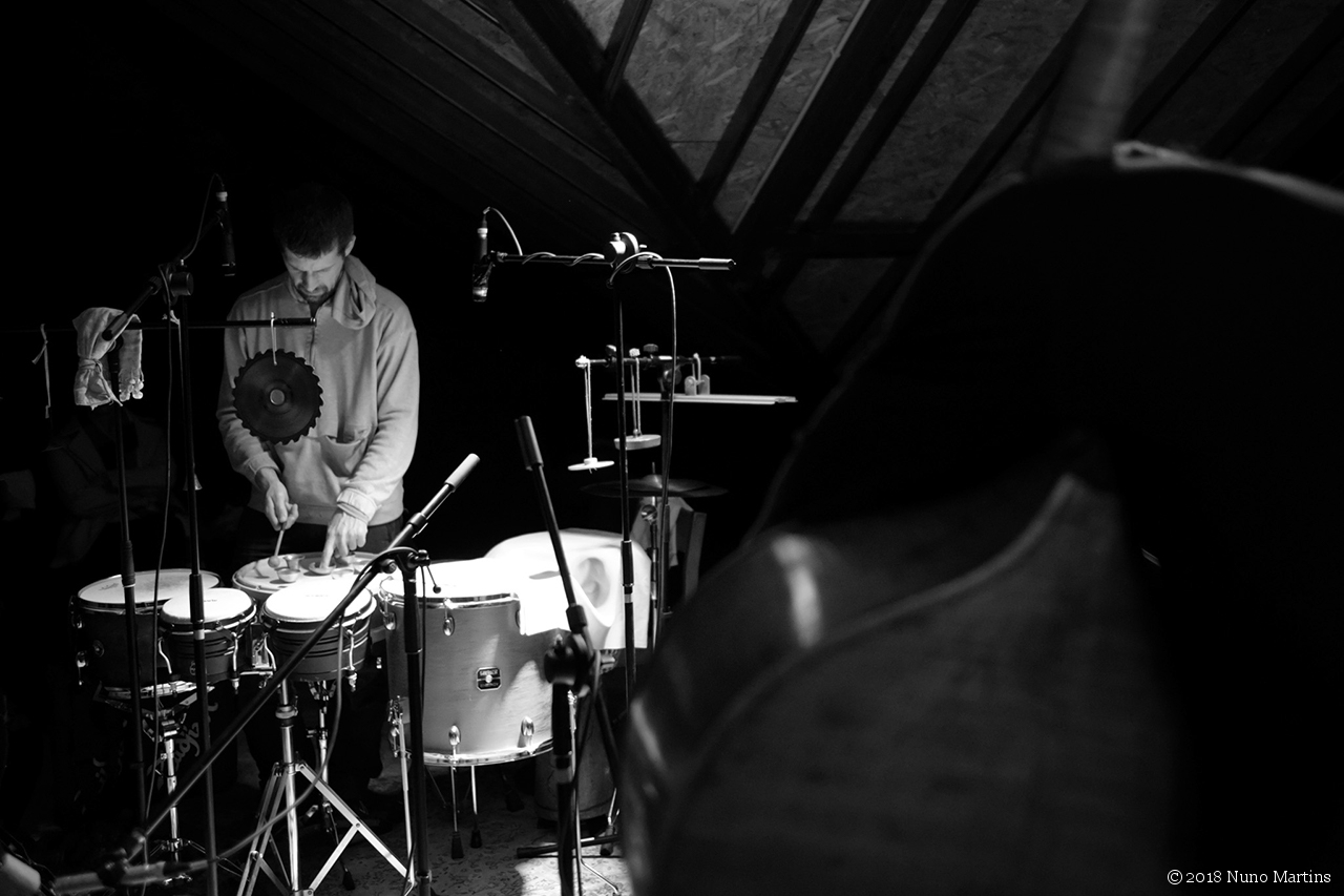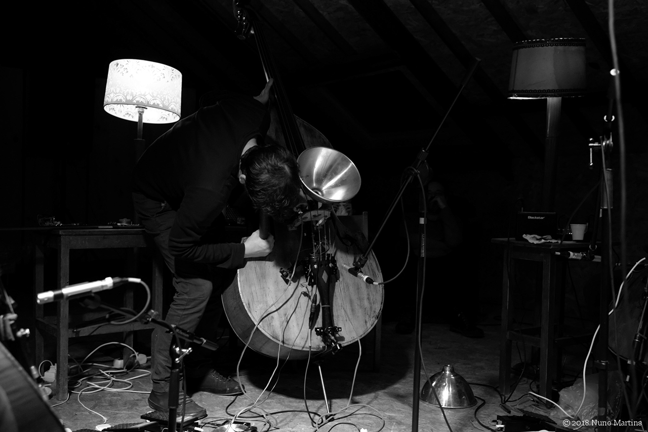 Beat The Odds & Nuno MorãoPascal Niggenkemper doublebass Elisabeth Coudoux cello Ricardo Jacinto cello w/ guest Nuno Morão percussion live @ Smup Parede, 19 December 2018