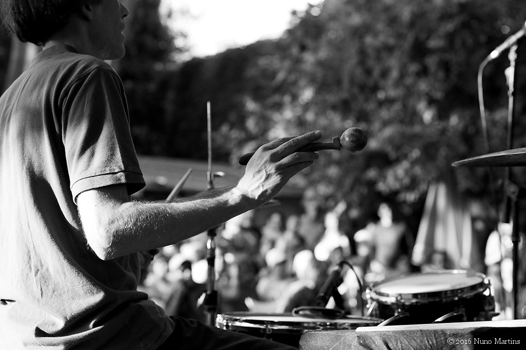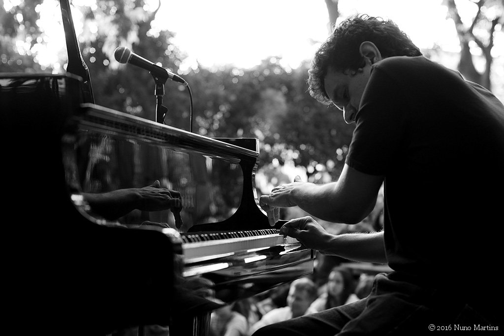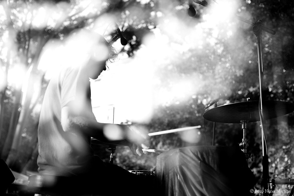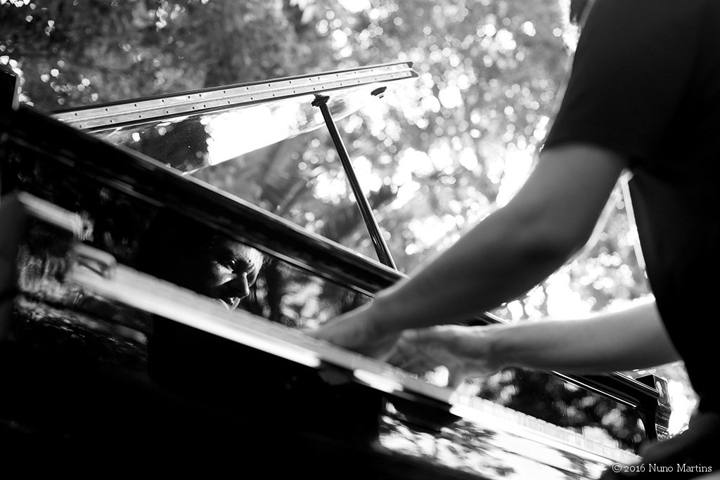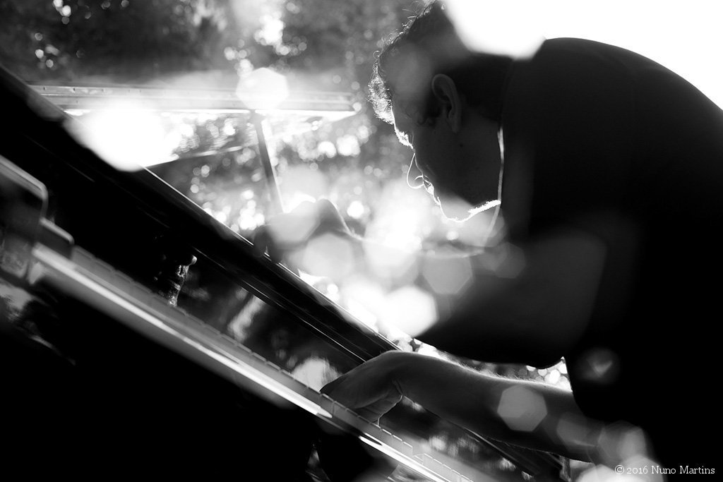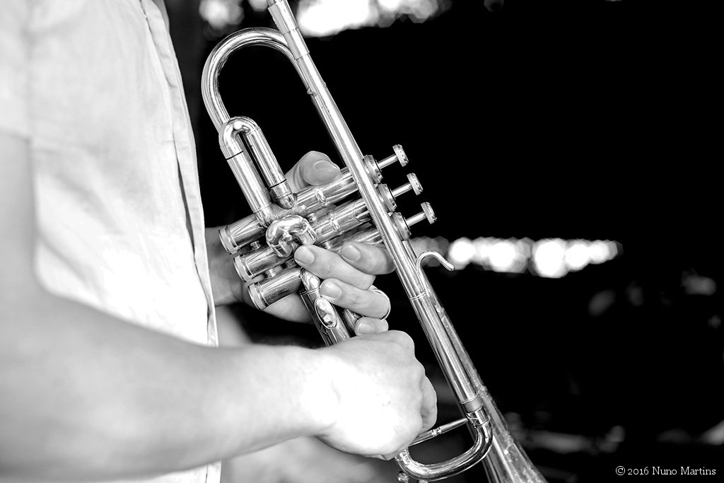 Clocks and CloudsLuís Vicente trumpet Hernâni Faustino doublebass Rodrigo Pinheiro piano Marco Franco drums live @ Jazz im Goethe Garten, Goethe Institut, Lisboa, 5 July 2016