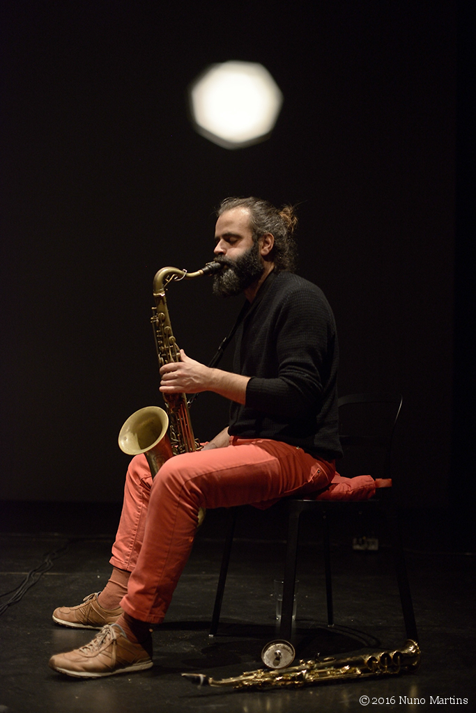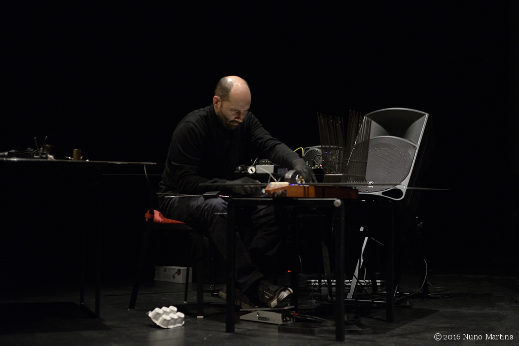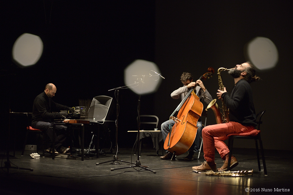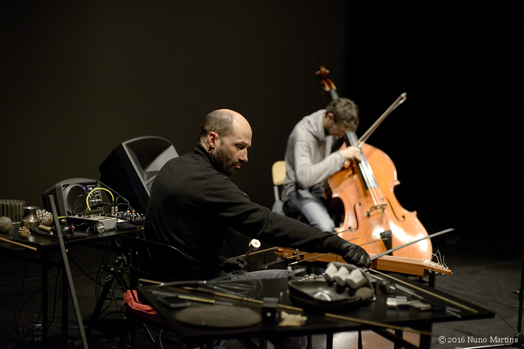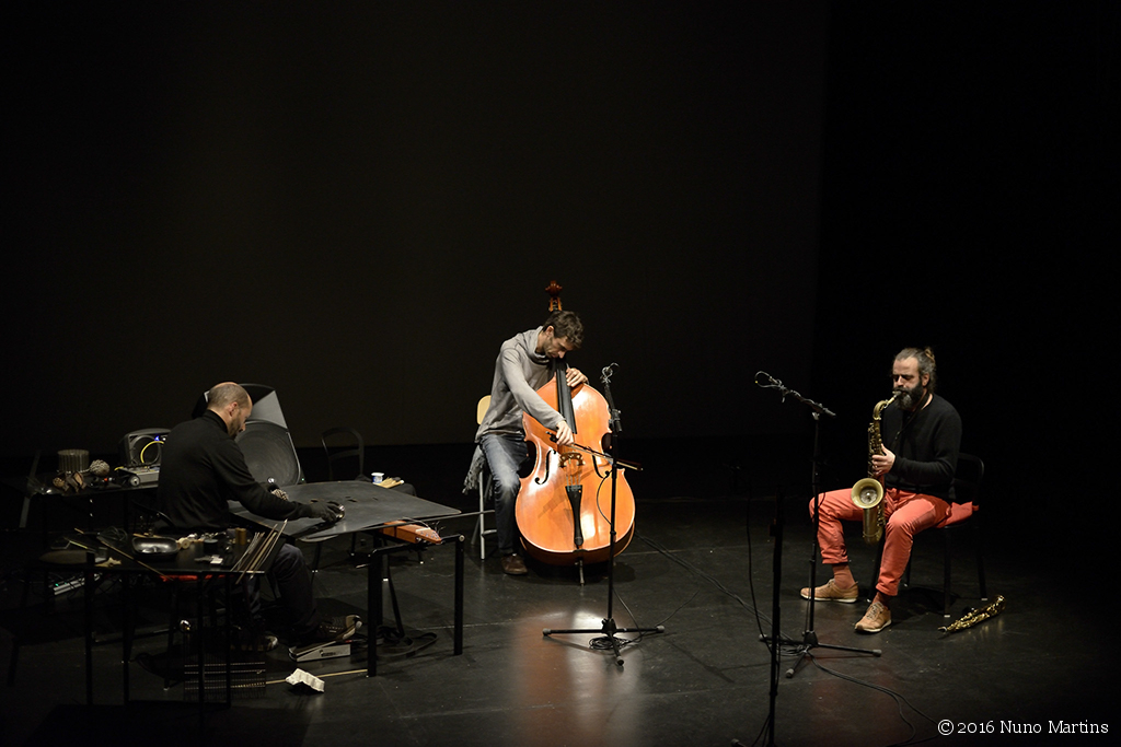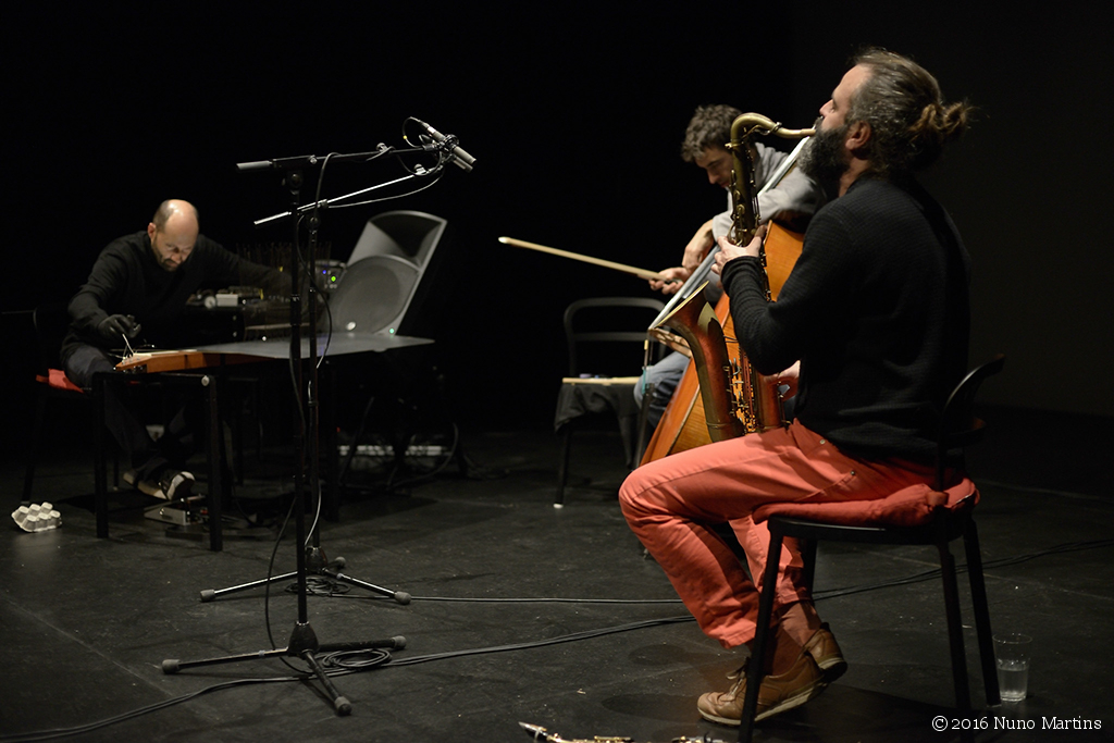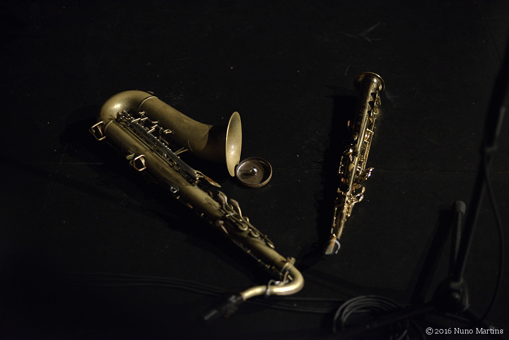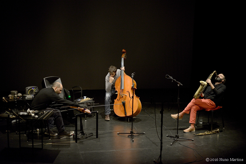 Dissection RoomAbdul Moimême prepared electric guitar, objects Alvaro Rosso doublebass Albert Cirera tenor saxophone live @ O’Culto da Ajuda, Lisboa, 12 November 2016