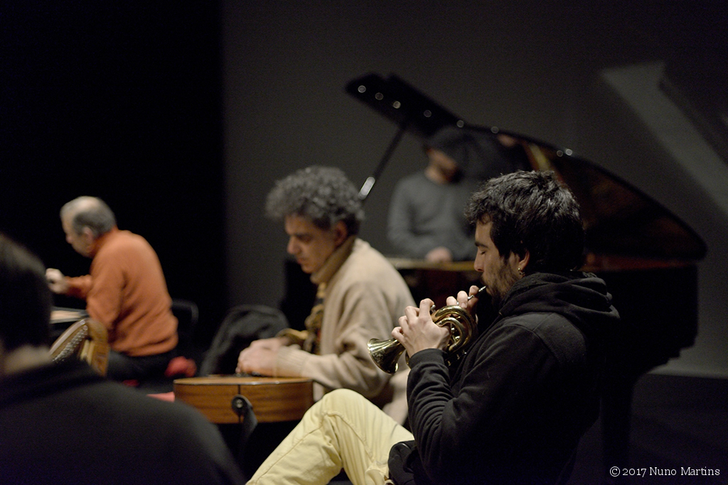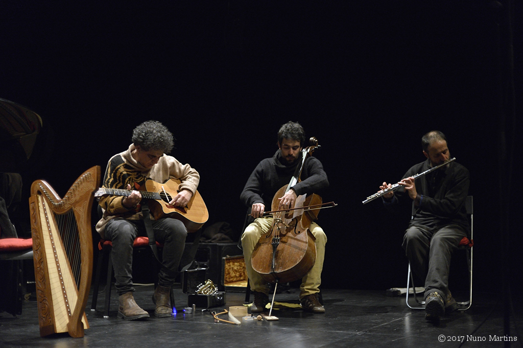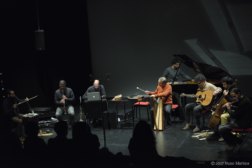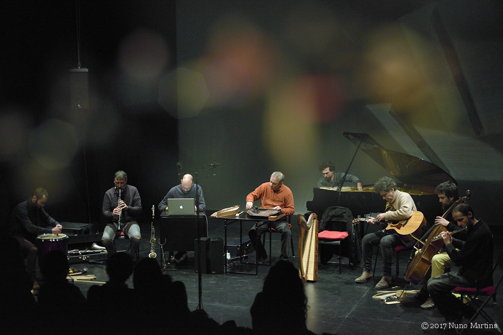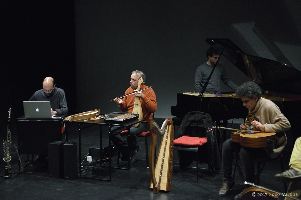 Ernesto Rodrigues harp, zither, dulcimer André Hencleeday tenor psaltery, piano Guilherme Rodrigues cello, pocket trumpet Flak acoustic guitar Bruno Parrinha clarinet, alto and bass clarinet Paulo Curado flute Ricardo Guerreiro computer Carlos Godinho percussion