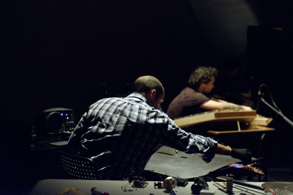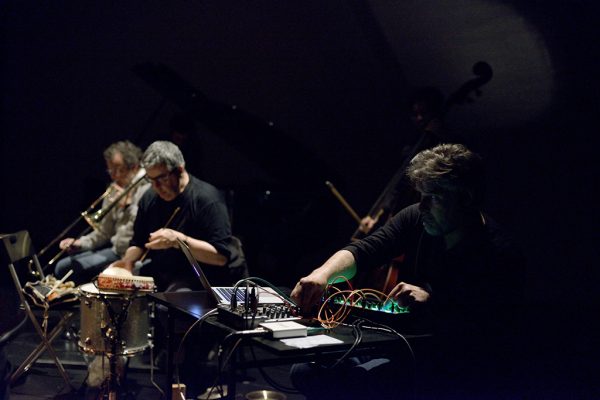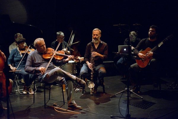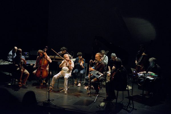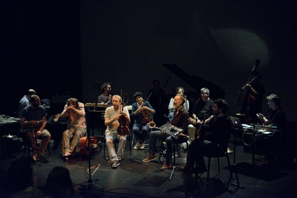 Ernesto Rodrigues viola Nuno Torres alto saxophone Luiz Rocha clarinet, bass clarinet Maria do Mar violin Miguel Mira cello Eduardo Chagas trombone Abdul Moimême prepared electric guitar, objects Miguel Almeida guitar André Hencleeday psalterium, zither Carlos Santos synthesizer, laptop Marc Ramirez doublebass José Oliveira percussion Rodrigo Pinheiro piano