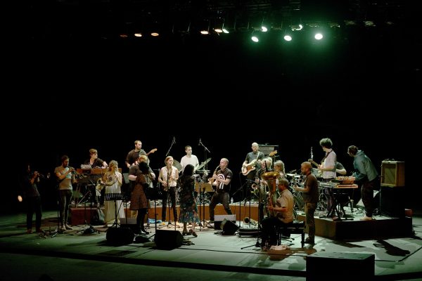 Mats Gustafsson tenor and baritone saxophones, direction Johan Berthling electric bass Andreas Werliin drums Martin Hederos keyboards Hild Sofie Tafjord french horn Mariam Wallentim voice Sofia Jernberg voice Lotte Anker tenor saxophone Anna Högberg alto saxophone Mette Rasmussen alto saxophone Jonas Kullhammar bass saxophone Andreas Berthling electric bass Mats Äleklint trombone Goran Kajfes trumpet Niklas Barnö trumpet Per-Åke Holmlander tuba Finn Loxbo electric guitar Julien Desprez electric guitar Mads Forsby drums
