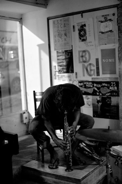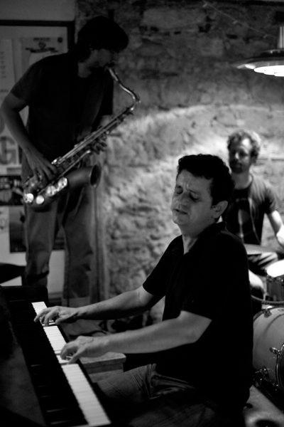 Rodrigo Pinheiro + Yedo Gibson + Vasco FurtadoRodrigo Pinheiro piano Yedo Gibson tenor & soprano saxophones Vasco Furtado drums live @ Bar Irreal, Lisboa, 22 July & 15 November 2017