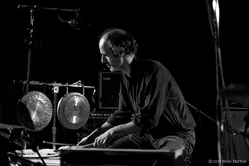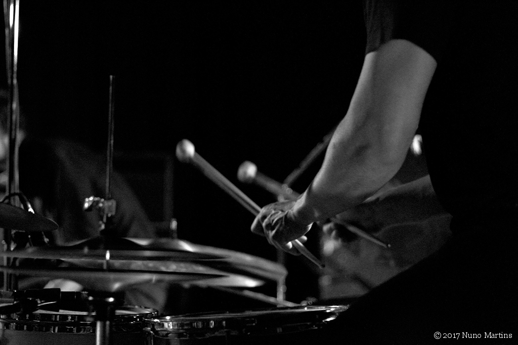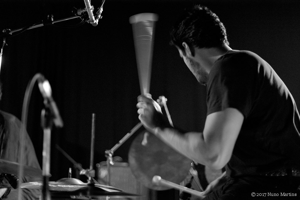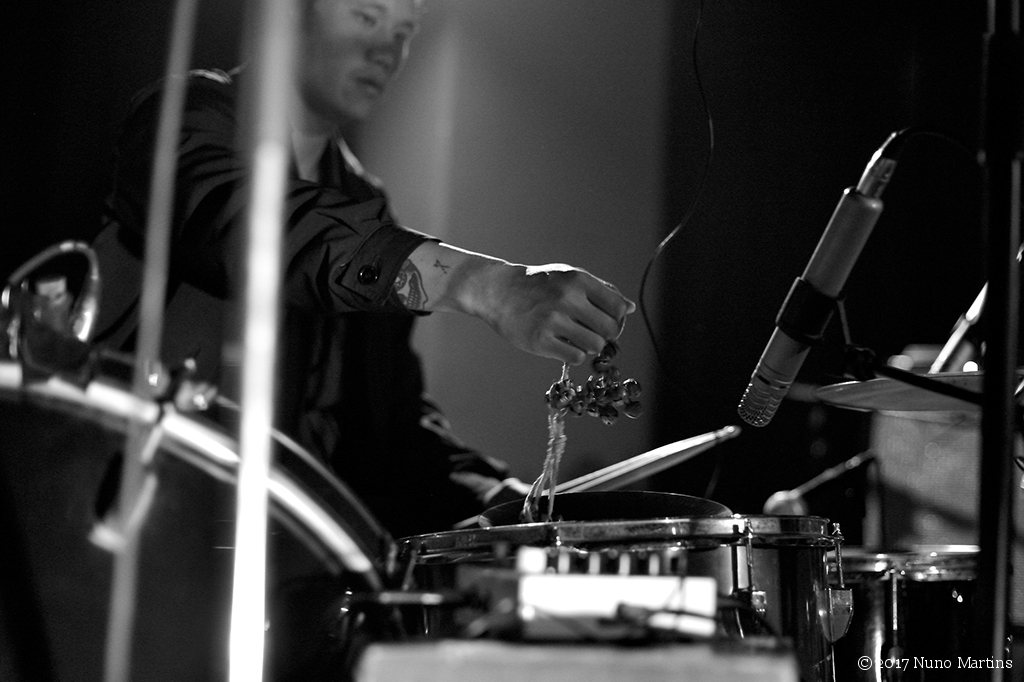 Alex Zhang Hungtai + David Maranha + Gabriel FerrandiniAlex Zhang Hungtai percussion, tenor saxophone, vocals David Maranha percussion, organ Gabriel Ferrandini drums live @ Galeria Zé dos Bois, Lisboa, 11 March 2017