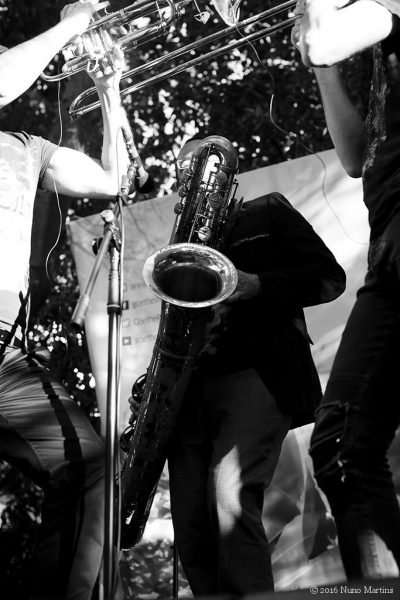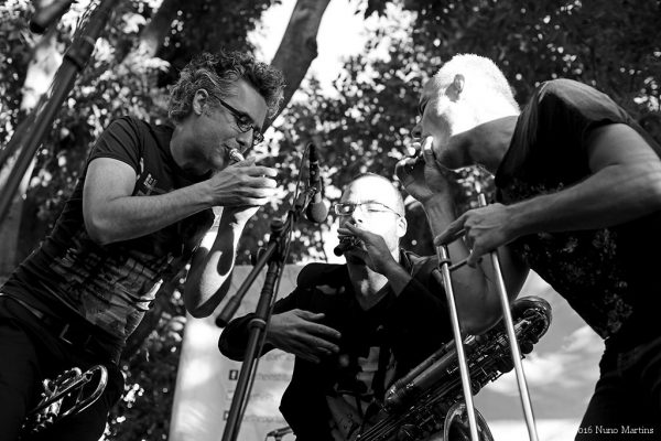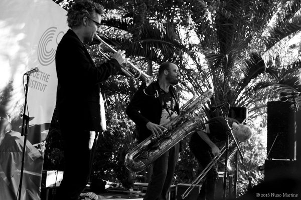 Journal IntimeSylvain Bardiau trumpet Frédéric Gastard alto saxophone Matthias Mahler trombone live @ Jazz im Goethe Garten, Goethe Institut, Lisboa, 12 July 2016