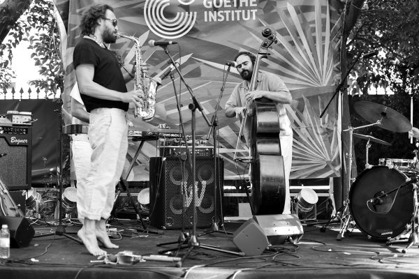 KonstruktKohran Futaci alto saxophone Umut Çağlar moog, electric guitar Özün Usta doublebass Kohran Argüden drums live @ Jazz im Goethe Garten festival, Goethe Institut, Lisboa, 10 July 2014