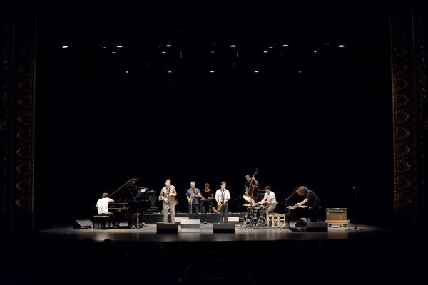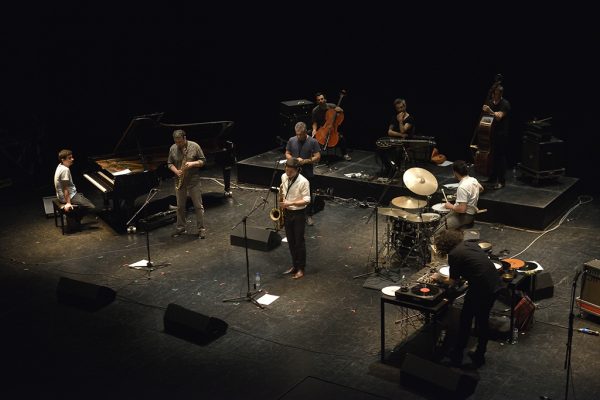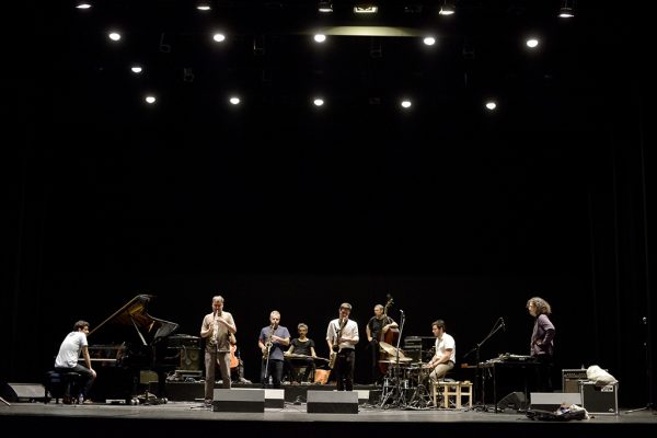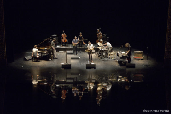 Luis Lopes electric guitar Rodrigo Amado alto saxophone Pedro Sousa tenor saxophone Bruno Parrinha clarinet & bass clarinet Ricardo Jacinto cello Hernâni Faustino doublebass Rodrigo Pinheiro piano Pedro Lopes turntables Gabriel Ferrandini drums w/ Suse Ribeiro at the soundboard controls
