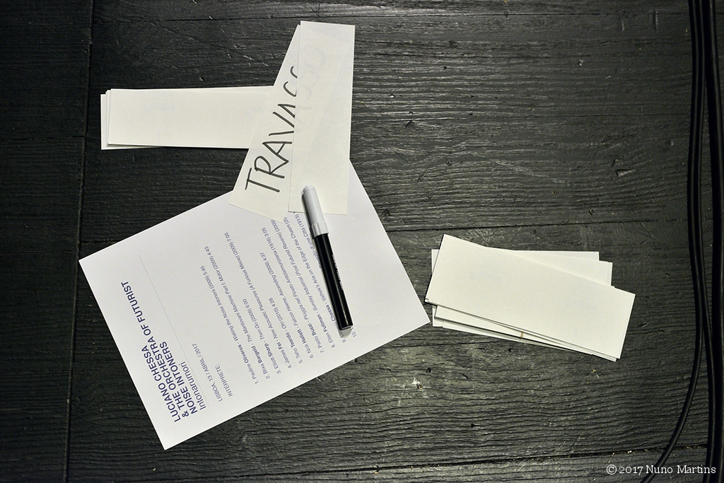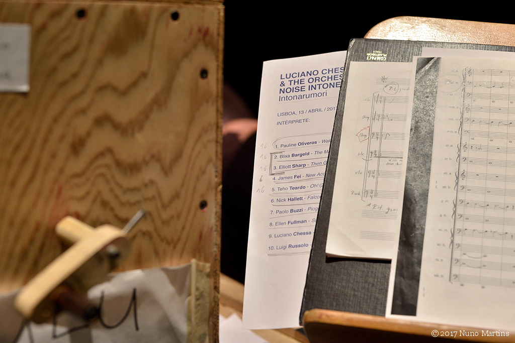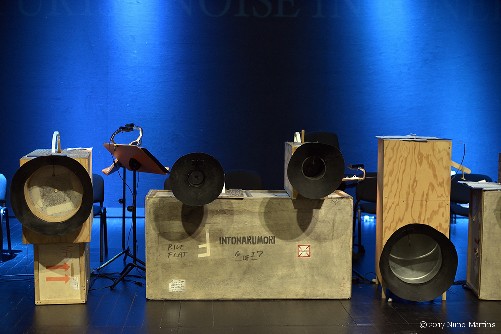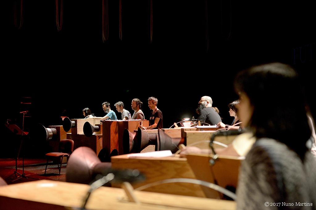 Luciano Chessa direction The Orchestra Of Futurist Noise Intoners: Adriana Sá, Bruno Silva, Carlos Santos, Diana Combo, Diana Policarpo, Diogo Alvim, Joana da Conceição, Joana Gama, Joana Guerra, Joaquim Albergaria, Luís Lopes, Pedro Sousa, Ricardo Jacinto, Riccardo Wanke, Shela & Travassos with voice from: Manuel Brás da Costa & Maria Radich technical director: Joshua Howes