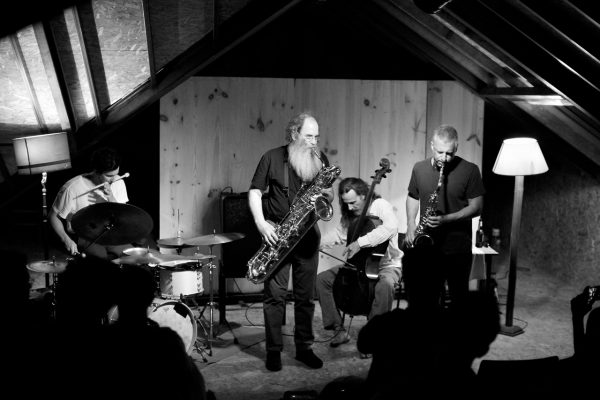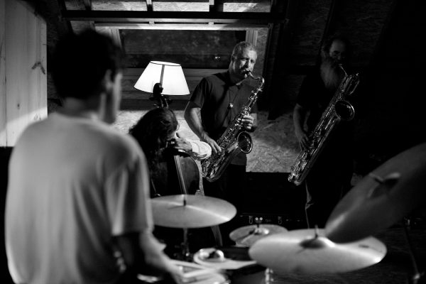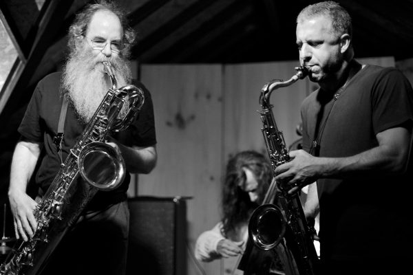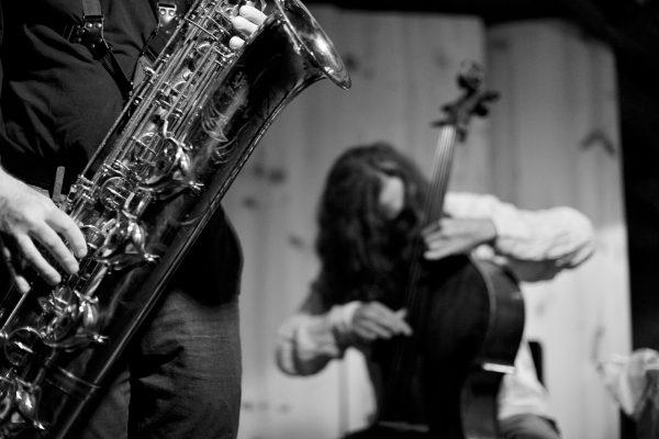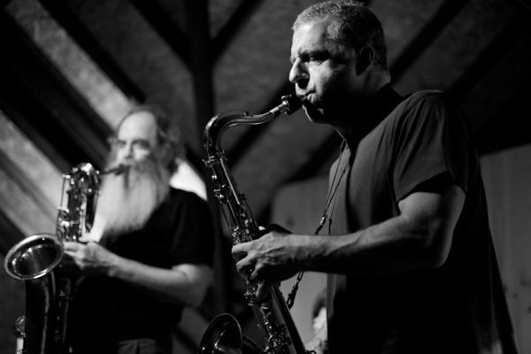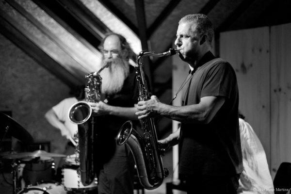 Rodrigo Amado Motion Trio w/ Dave SewelsonRodrigo Amado tenor saxophone Miguel Mira cello Gabriel Ferrandini drums with guest Dave Sewelson baritone saxophone live @ SMUP, Parede, 24 June 2017