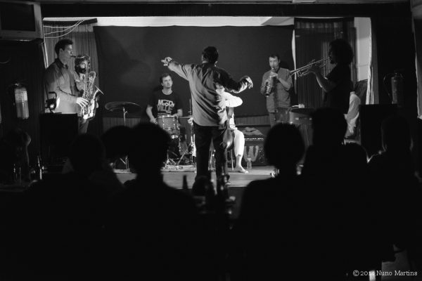 Luís Bragança Gil conduction Paulo Pimentel piano Luís Vicente trumpet Miguel Mira cello Albert Cirera tenor saxophone Francisco Andrade tenor saxophone José Bruno Parrinha soprano saxophone Marco Franco drums João Lencastre drums