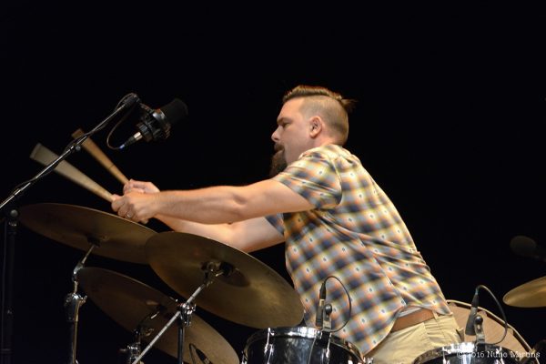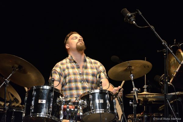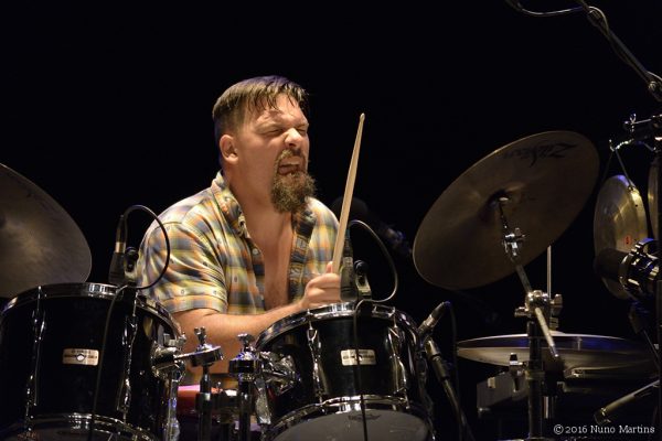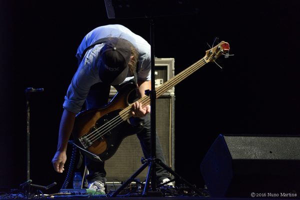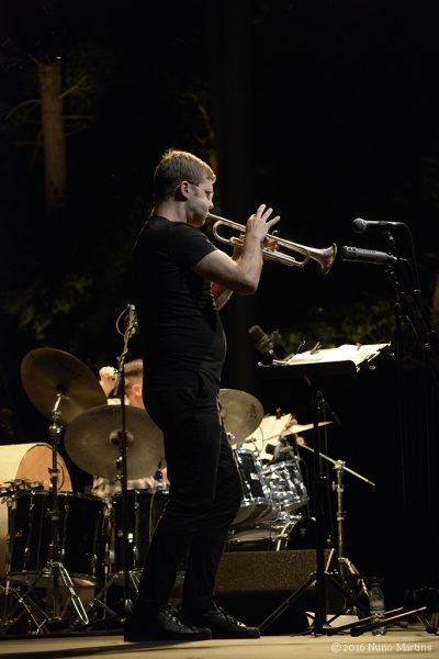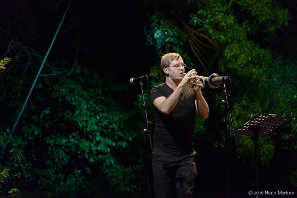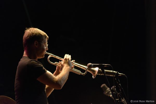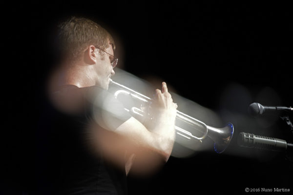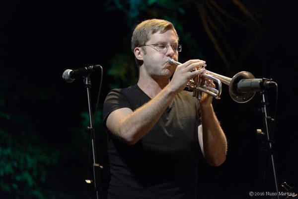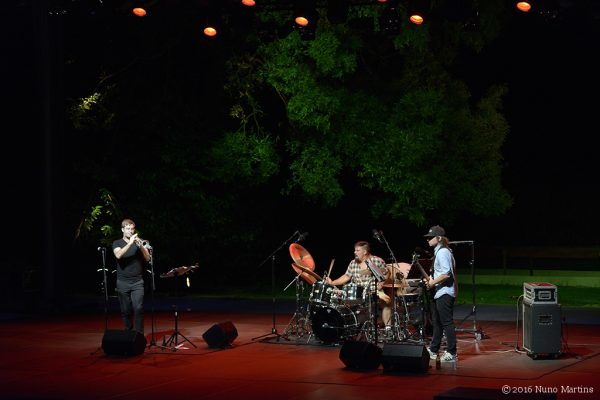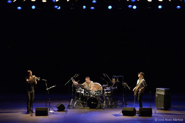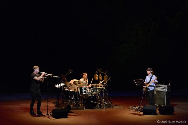 Pulverize The SoundPeter Evans trumpet Tim Dahl electric bass Mike Pride drums live @ Jazz em Agosto, Fundação Calouste Gulbenkian, Lisboa, 6 August 2016
