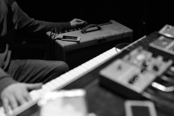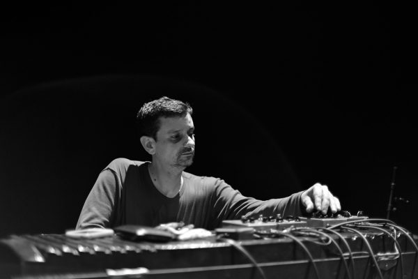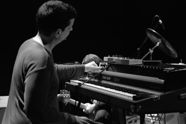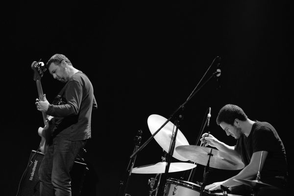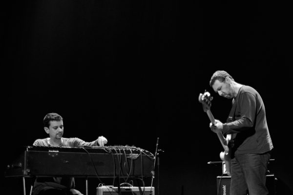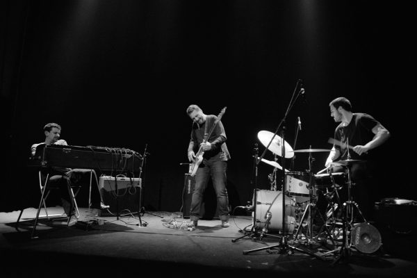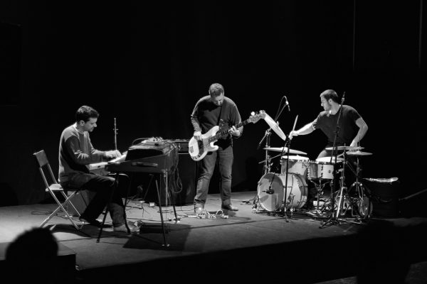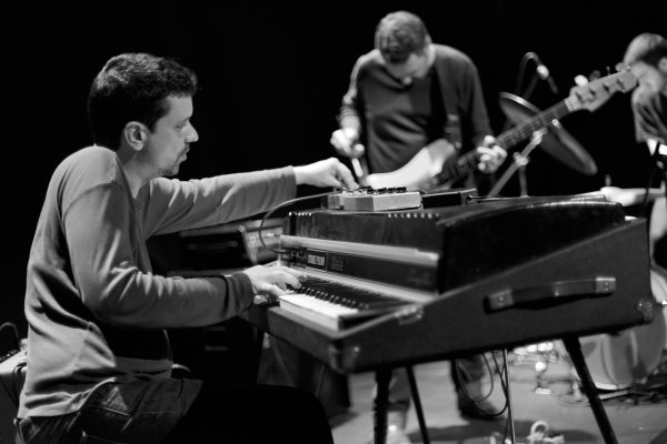 Red Trio ElectricHernâni Faustino electric bass Rodrigo Pinheiro fender rhodes Gabriel Ferrandini drums live @ Teatro do Bairro, Lisboa, 28 February 2014