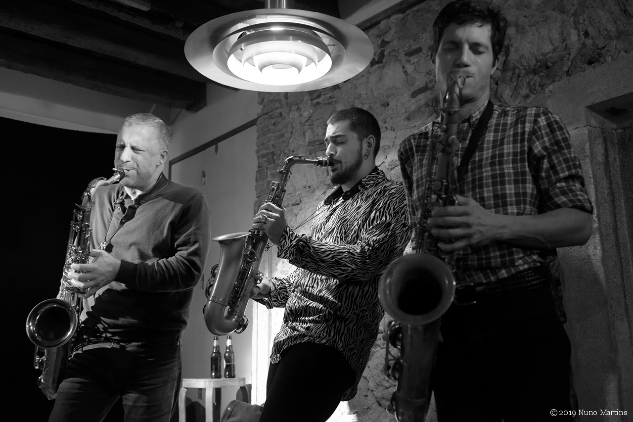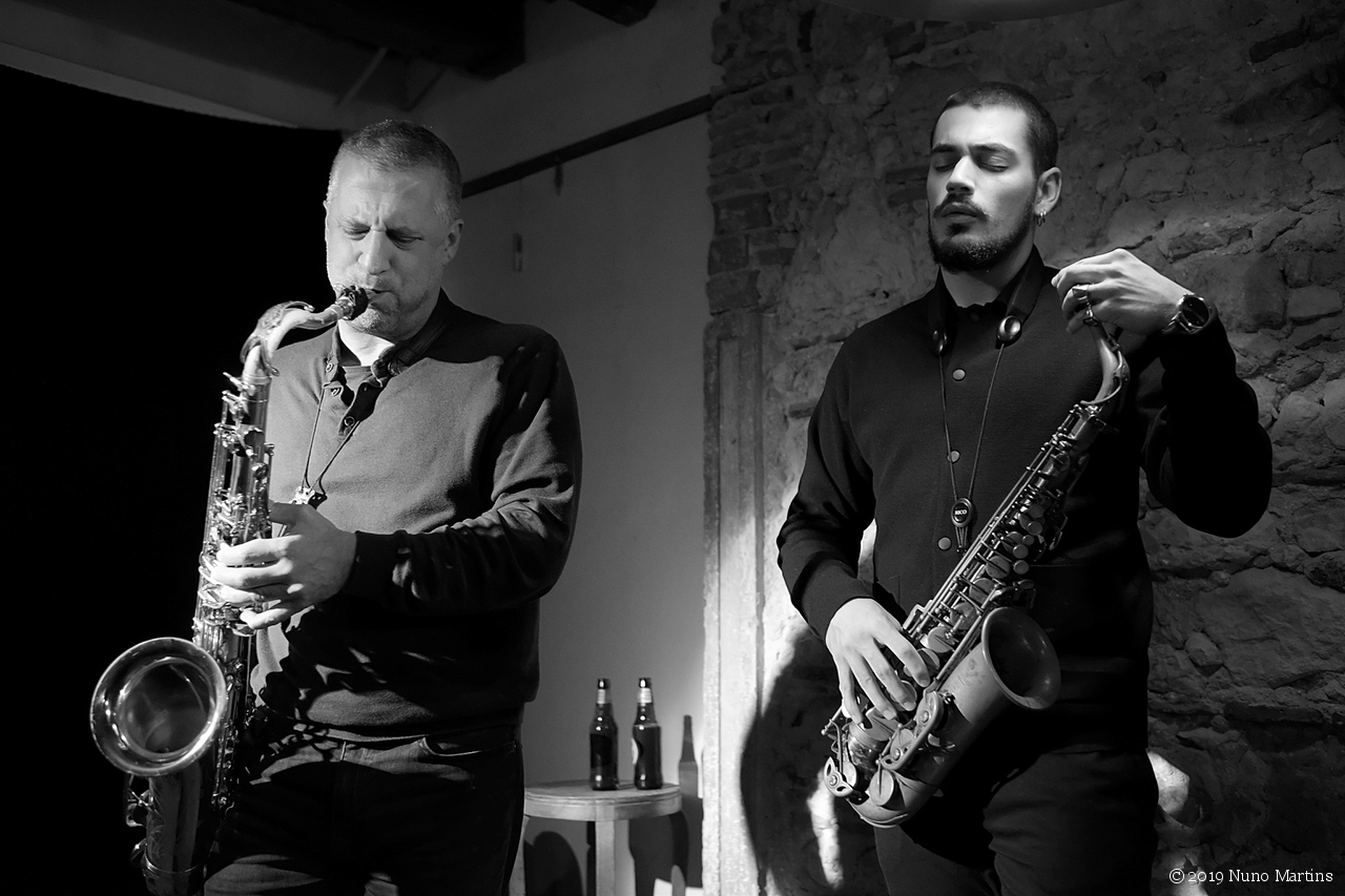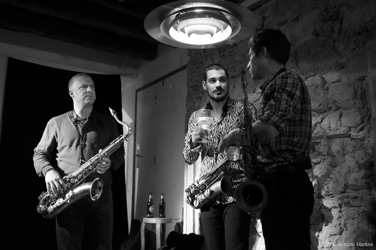 Sax InfernoRodrigo Amado tenor saxophone Ricardo Toscano alto saxophone Pedro Sousa tenor saxophone live @ Irreal, Lisboa, 12 January 2019