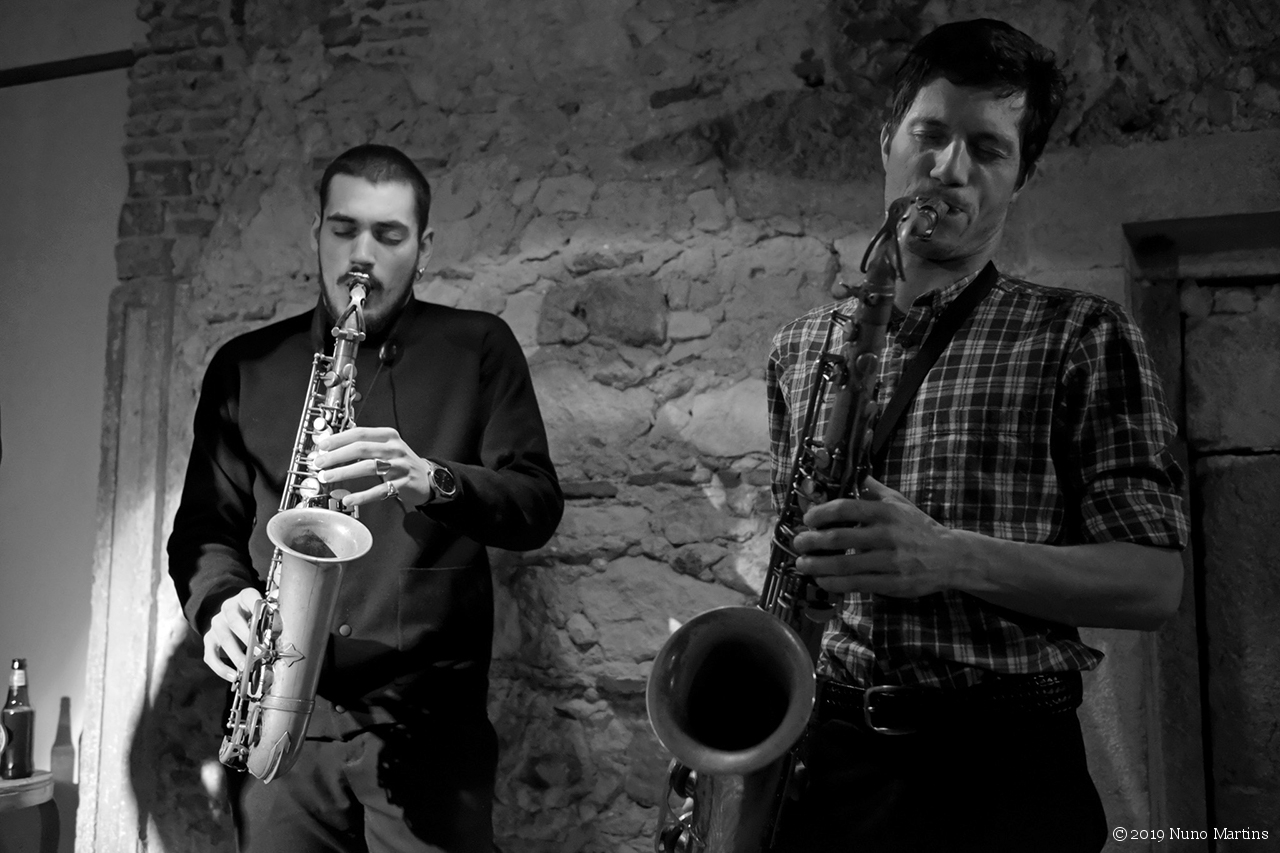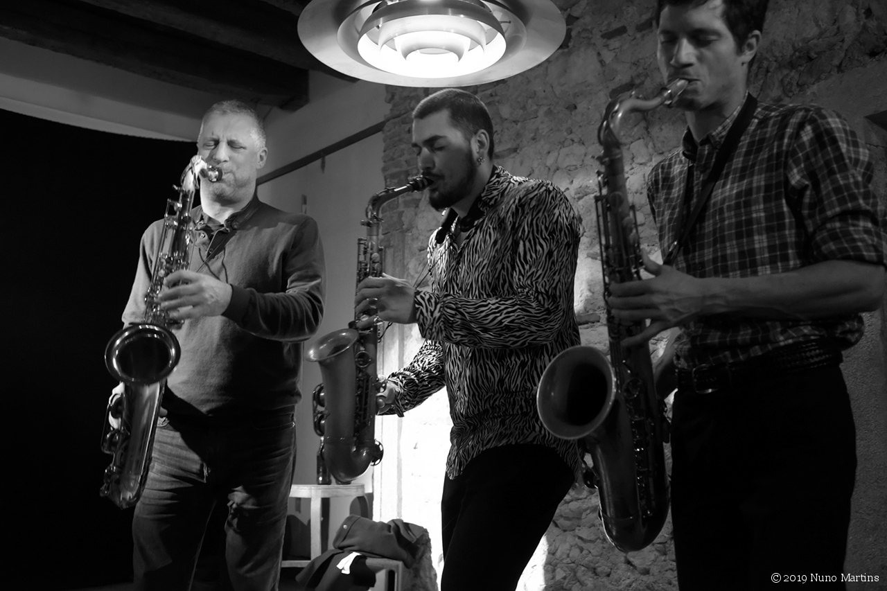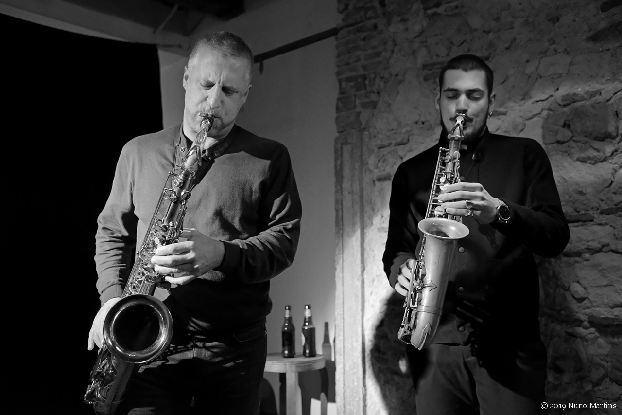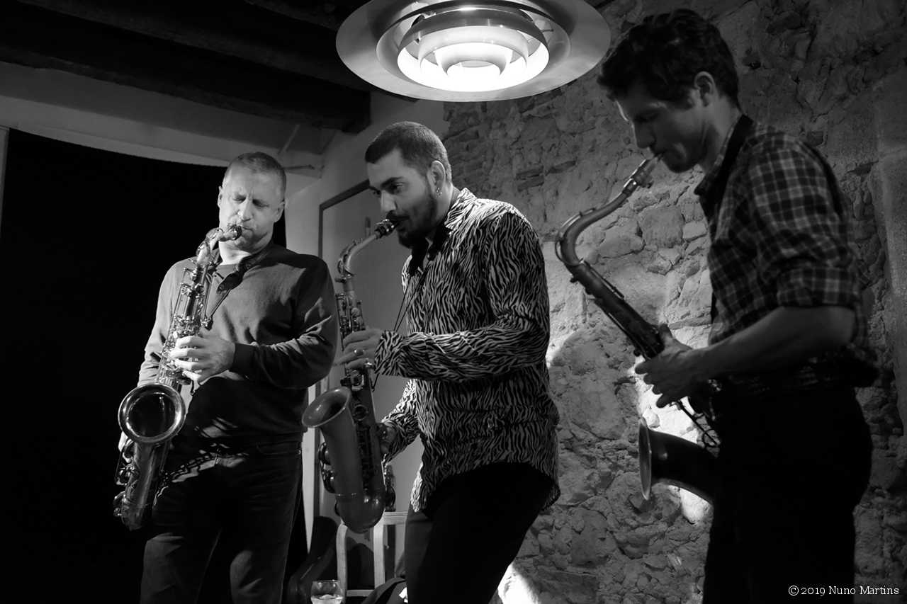 Sax InfernoRodrigo Amado tenor saxophone Ricardo Toscano alto saxophone Pedro Sousa tenor saxophone live @ Irreal, Lisboa, 12 January 2019