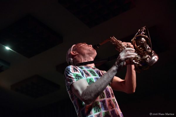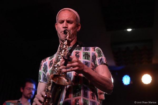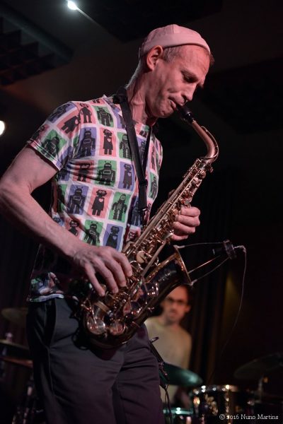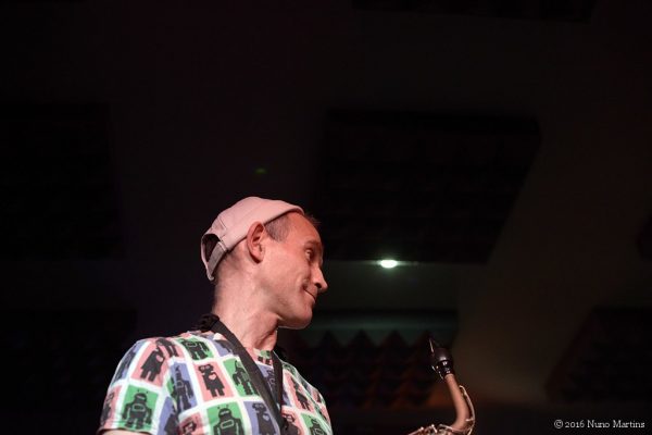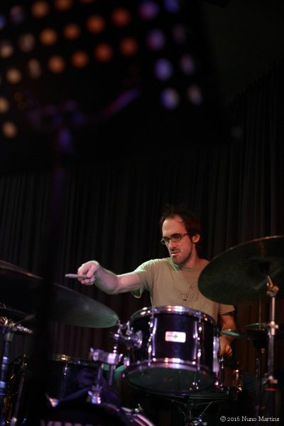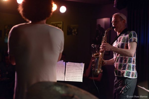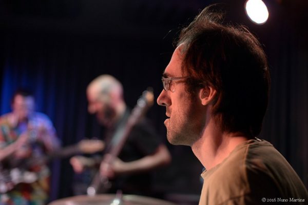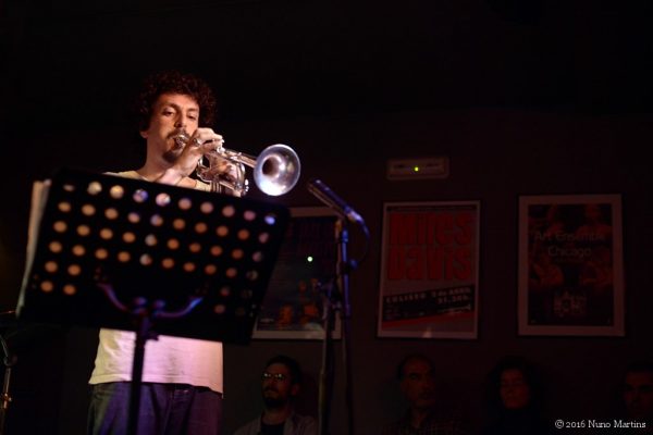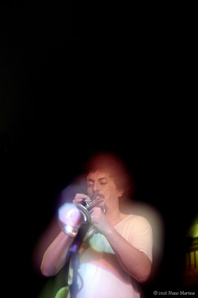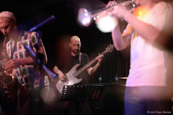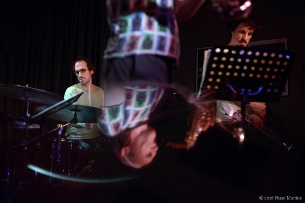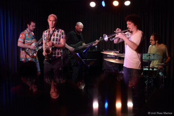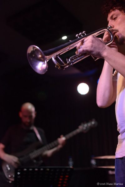 Spinifex & Luís VicenteTobias Klein alto saxophone Jasper Stadhouders electric guitar Gonçalo Almeida electric bass Philipp Moser drums with guest Luís Vicente trumpet live @ Hot Clube de Portugal, Lisboa, 26 May 2016