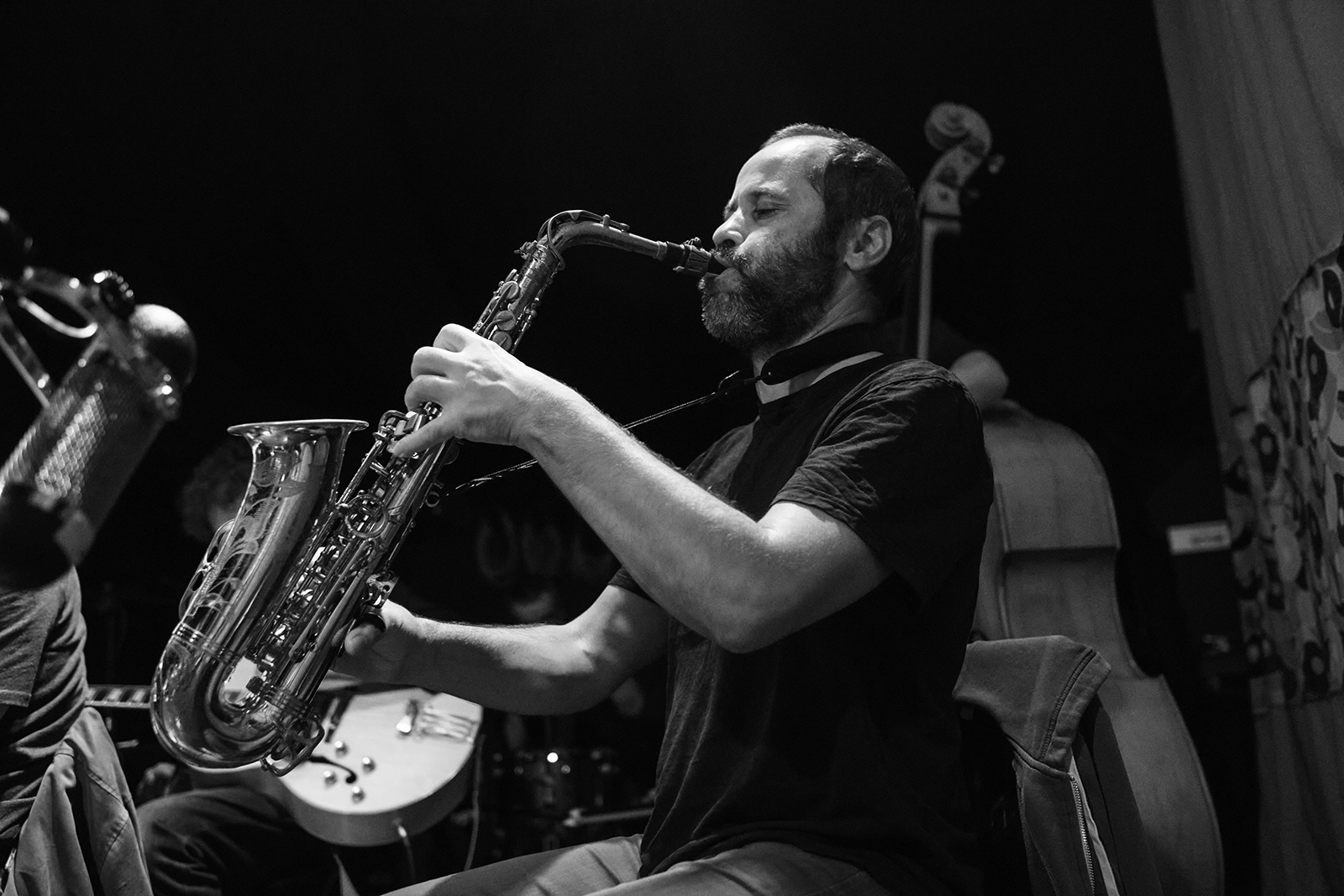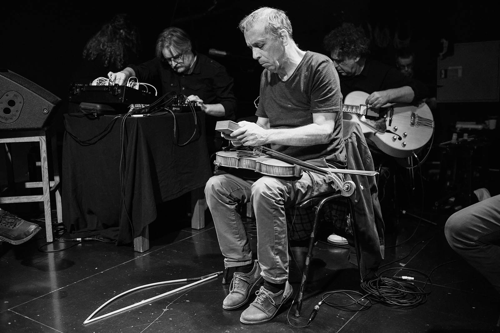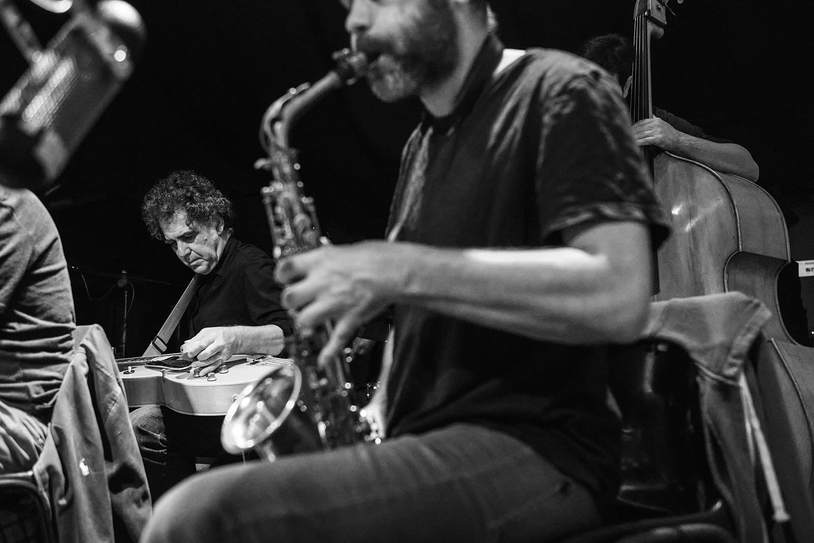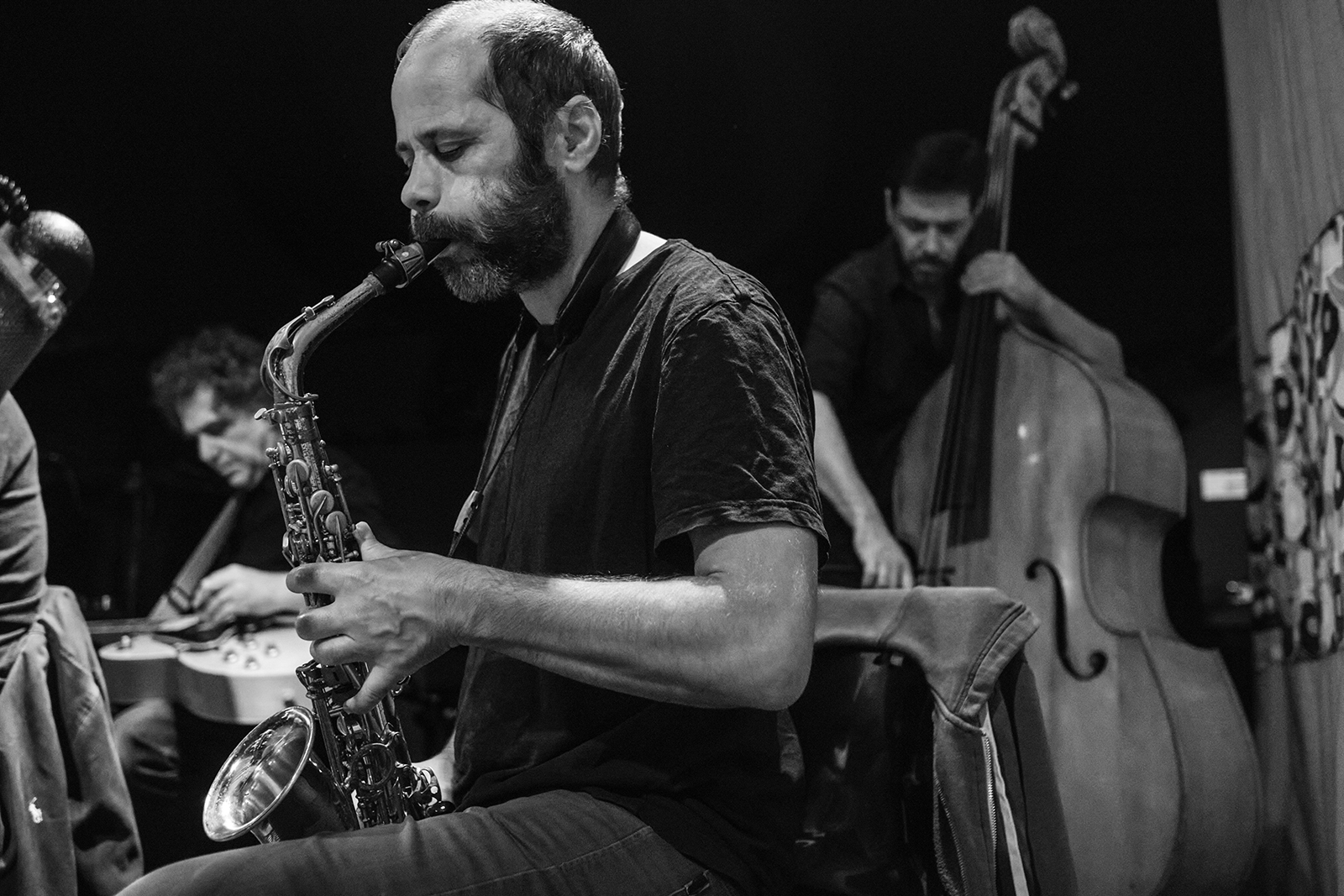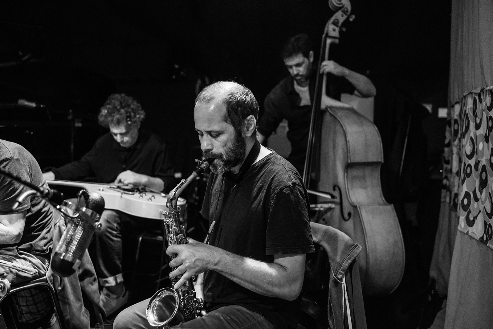SuspensãoErnesto Rodrigues viola Nuno Torres alto saxophone João Gato soprano saxophone Flak electric guitar Carlos Santos electronics Luísa Gonçalves piano João Madeira doublebass José Oliveira drums live @ SMUP, Parede, 27 May 2023