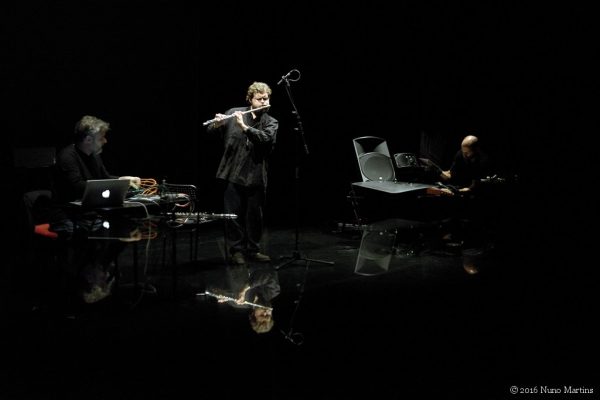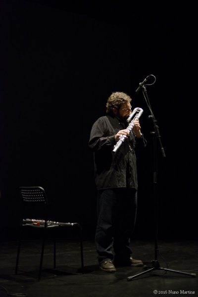 Wilfrido Terrazas + Carlos Santos + Abdul MoimêmeWilfrido Terrazas flute, bass flute Carlos Santos electronics Abdul Moimême prepared guitar, objects live @ O’Culto da Ajuda, Lisboa, 1 November 2016