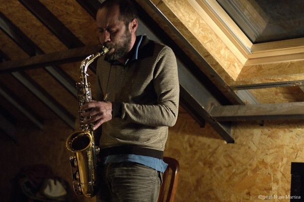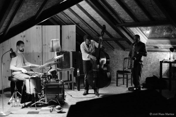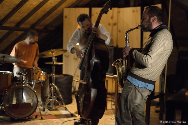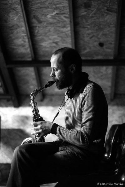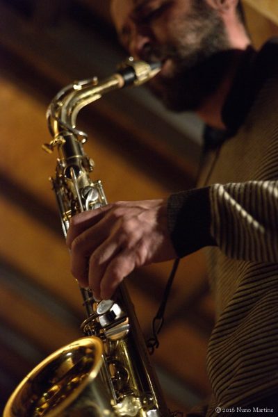 Nuno Torres + Hernâni Faustino + Nuno MorãoNuno Torres alto saxophone Hernâni Faustino doublebass Nuno Morão drums live @ SMUP, Parede, 26 March 2016