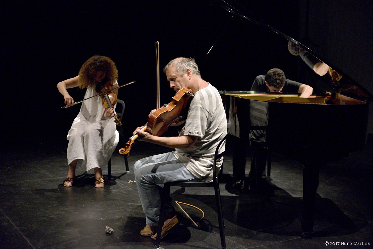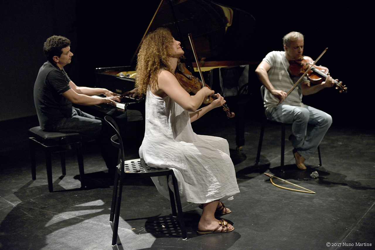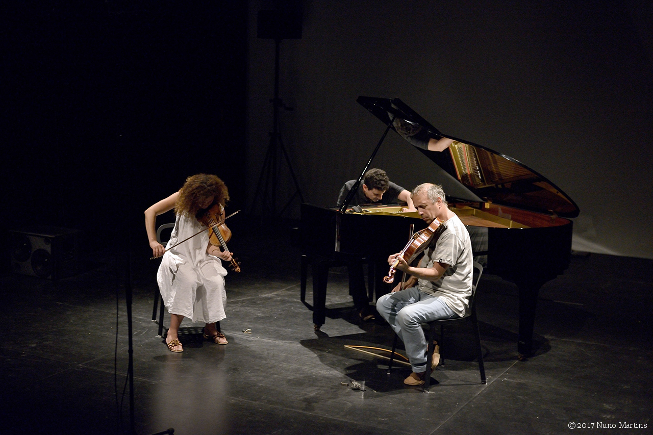 Biliana Voutchkova + Ernesto Rodrigues + Rodrigo PinheiroBiliana Voutchkova violin Ernesto Rodrigues viola Rodrigo Pinheiro piano live @ O’Culto da Ajuda, Lisboa, 20 June 2017