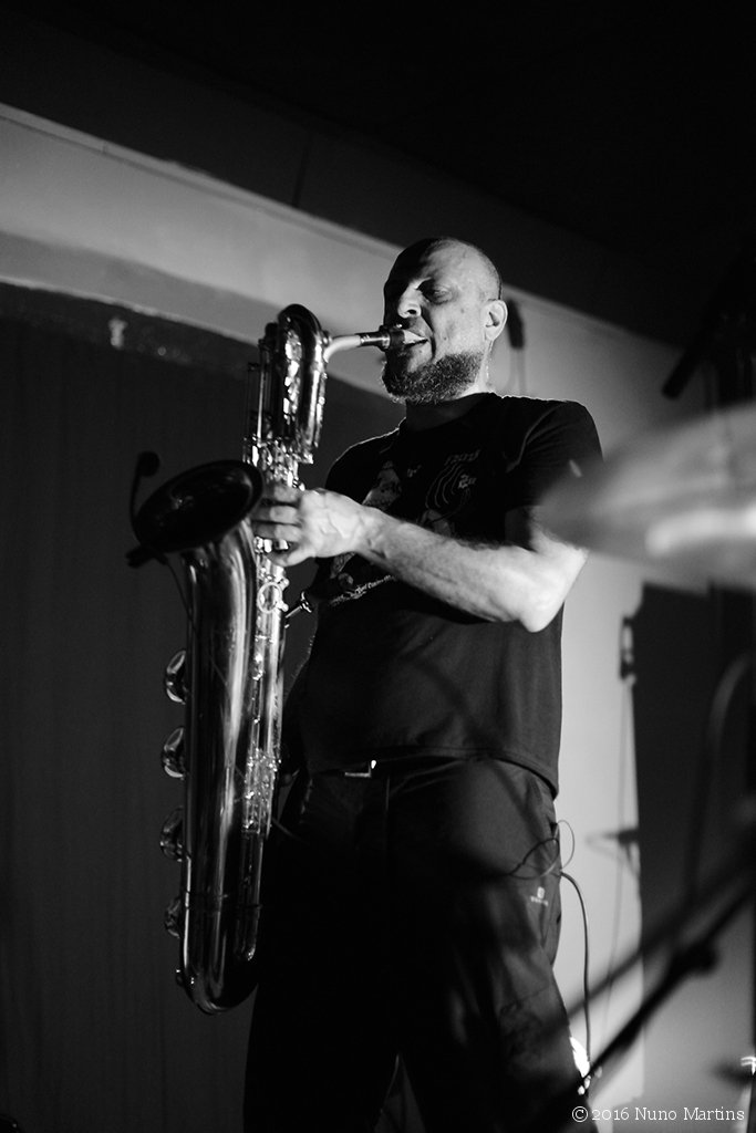 ZuMassimo Pupillo bass Tomas Järmyr drums Luca T. Mai baritone sax live @ Galeria Zé dos Bois, Lisboa, 30 November 2016